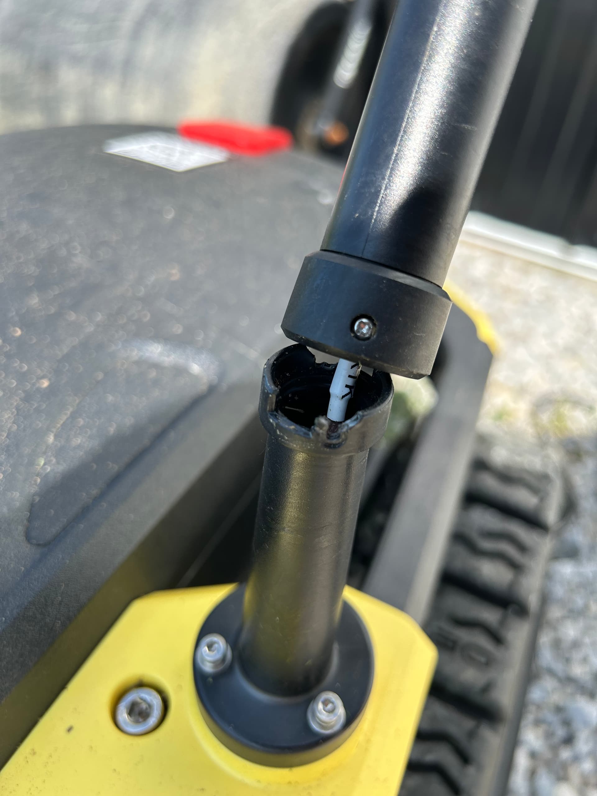 Need to open a ticket still but man it sure seemed like it took no effort at all for it break off. And it just broke the lower section right at the screw holes. Which I’m guessing just sitting out in the sun is going to make it happen more often. Plastic like this tends to get brittle sitting in the sun. Flexible would nice, but I’m sure would cause issues in the math. When I found the top section hanging, yarbo was still mowing but if you look at the lines in the yard it was drunk. Missed sections not straight, you can see a distinct difference from before and after.