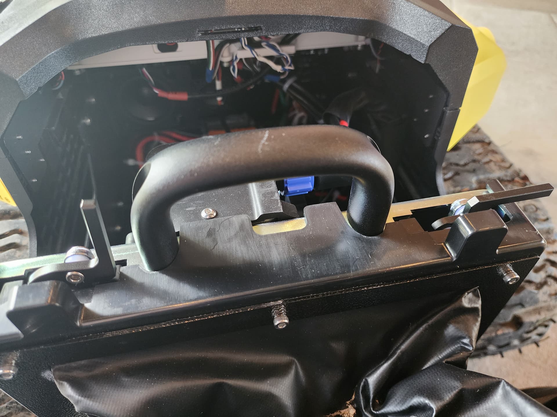 Try using the pitch angle (can do in the App or the Y and A buttons on the controller) up or down to relax the connection between the mower and the rover. You’ll get the pins to a good angle/height where you should be able to remove the mower more easily.